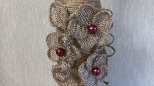 Оформление бутылки джутовой веревкой