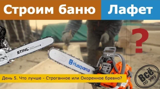 Строим баню 45м2 из лафета. День 5. Лучше строганное или окоренное бревно? Бензопила. Все по уму