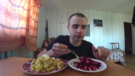 МУКБАНГАСМР САЛАТ-СВЕКЛА с ЛУКОМКАРТОШКА ЖАРЕНАЯ с МАЙОНЕЗОМКАПУСТА ТУШЕНАЯ EATINGASMRMukbang#149