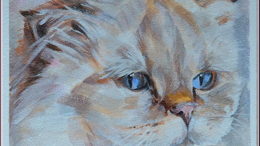 Как нарисовать кошку. Шотландская вислоухая кошка. Акрил