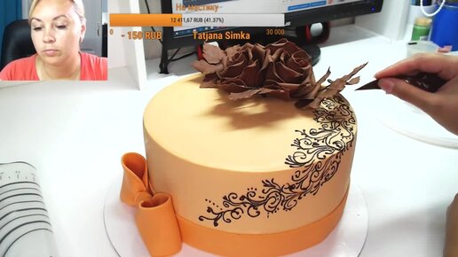 Мастичный торт с розой и бантом Танинторт