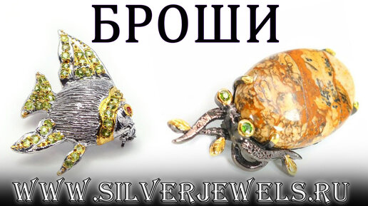 Обзор серебряных украшений. Серебряные броши с натуральными камнями, ручная работа, Сильверджевелс