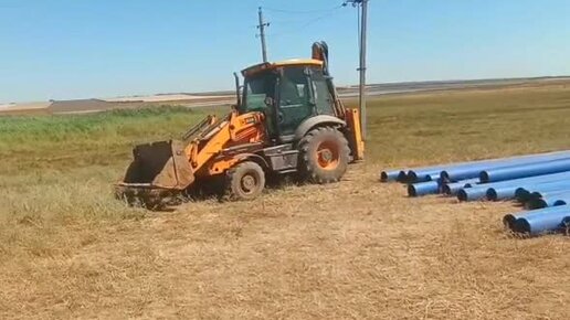 Наш экскаватор-погрузчик на объекте работ, июль 2022
