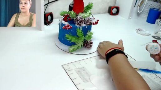 Новогодний торт с фигуркой Снегиря Еловые ветки и шишки мк Танинторт