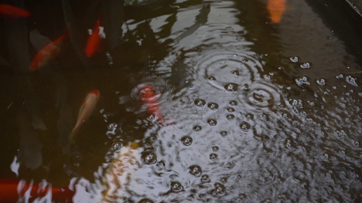 Водоём с рыбами, барвинок большой, дикая герань, незабудка и другие растения в Московском Ботаническом саду МГУ "Аптекарский огород"