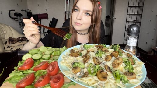 Мукбанг | Паста в сливочном соусе с грибами и брокколи | Любимые сериалы