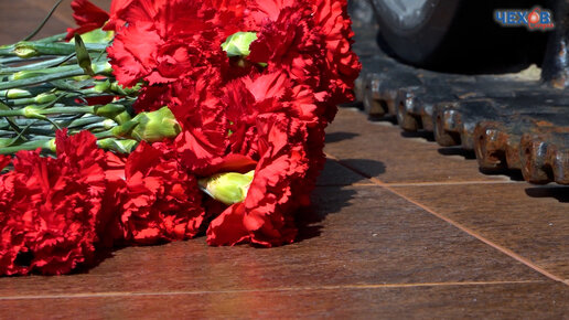 После автоматных залпов на постамент к боевой машине легли алые гвоздики