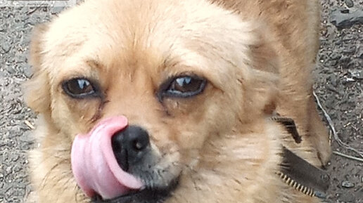 Метис пекинеса весом 5 кг. живет на цепи и рожает щенков...