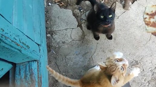 Как деревенские коты уплетают батины блины))) Корма целая миса.
