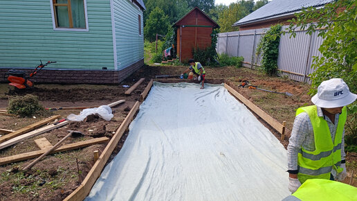 Устройство дорожки к дому и парковки на въезд. Планировка участка под газон.