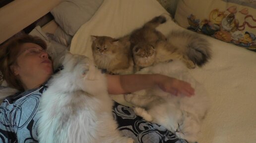 Мама решила прилечь и все кошки тут как тут