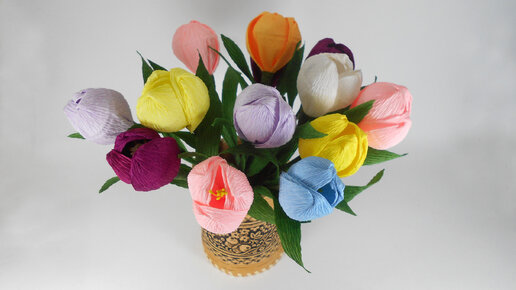 Крокусы из гофрированной бумаги, подробный МК