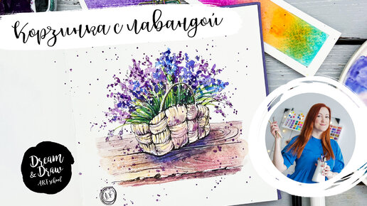 Корзинка с лавандой. Уроки рисования для новичков. Акварельный скетчинг