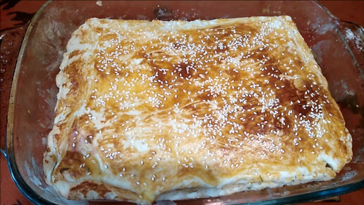 Пирог из слоёного теста с курицей и шампиньонами