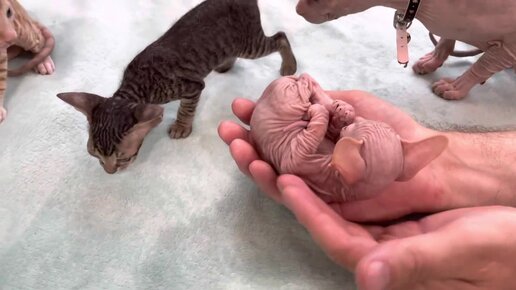 Разновидности Донского сфинкса в пределах одной семьи. Браш Велюр и Резинка