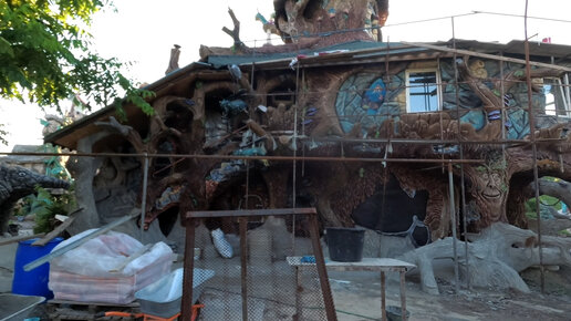 Оформление фасада дома ,лестница на второй этаж, декоративная штукатурка из цемент