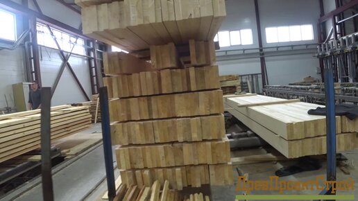 На заводе, цех по изготовлению клееного бруса.