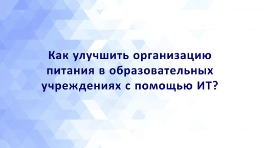 Как улучшить организацию питания в образовательных учреждениях с помощью ИТ?