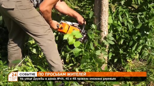 На улице Дружбы в домах №4А, 4Б и 4В провели опиловку деревьев