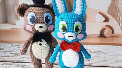 Бесплатное видео-описание амигуруми. Добрая версия Кролика Бонни и Мишки Фредди. Вяжем крючком.