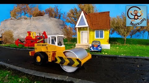 Строим город для Машинок Игрушек - Экскаватор, бульдозер и дорожный каток делают дорогу. Манкиту