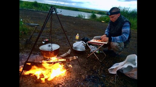 Ч.2 Сазан и крупный карась _ УХА, ШАШЛЫК _ Рыбалка с НОЧЁВКОЙ на сибирской реке