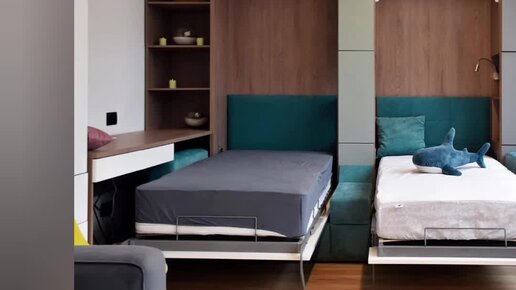Двойная шкаф-кровать идеально подойдет для комнаты, где живут двое детей.