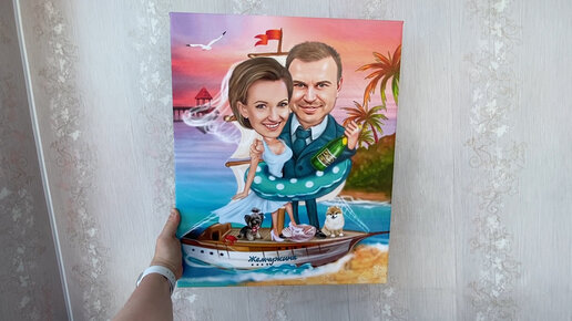 Шарж по фото на холсте 45х55см. Подарок на годовщину свадьбы. Москва