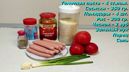 Хотела приготовить Джамбалайю, залезла в холодильник и оказалось, что не хватает ингредиентов. Получился рецепт риса с томатами и сосисками.