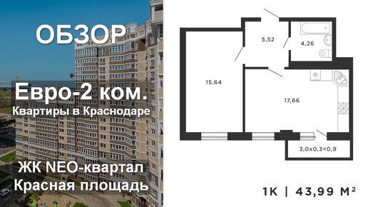Обзор лучшей Евро-двушки в Краснодаре (43,99 м2) в ЖК NEO-квартал Красная площадь