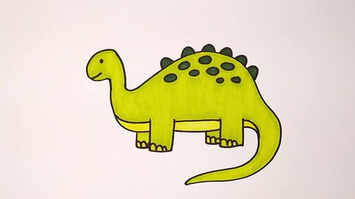 Зелёный динозаврик. Простые рисунки.