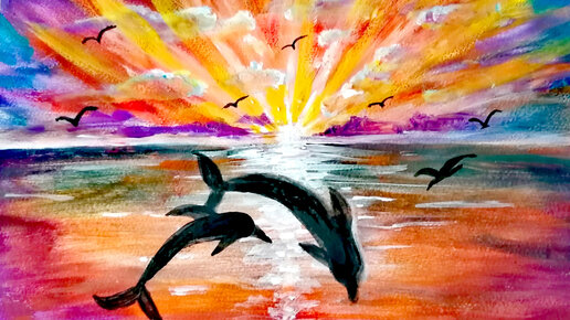 Как нарисовать море, закат и дельфинов за 5 минут! Правополушарноерисование, простая техника