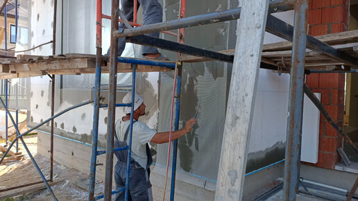 Базовый Армирующий Слой из клея СФТК Мокрый Фасад Baumit ProContact и Фасадной Стеклотканевой Сетки Bautex Krepix 2000, технология работ