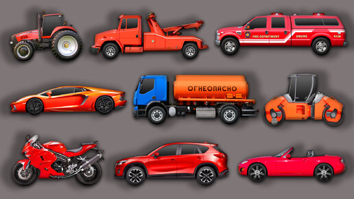 Обучающее видео для малышей. Мультик про машинки. Виды транспорта: Скорая помощь Пожарная машина Мусоровоз Трактор Джип. Крутые тачки