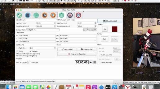 Подключение и настройка AZ-Gti к программе управления планетарием EKOS Kstars