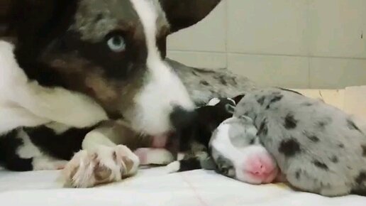 Родилось 6 девочек и 6 мальчиков вельш корги Кардиган, их мама очень устала