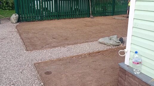 Парковка на въезд, подготовка основания к посеву газона, обзор работы.