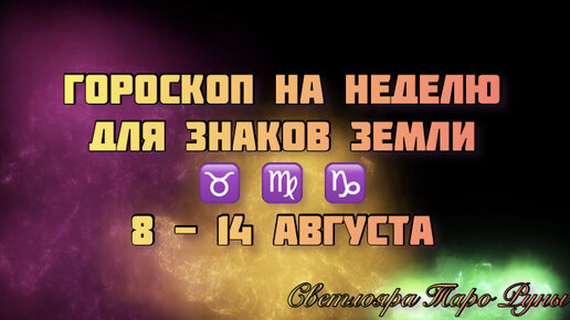 💯Гороскоп на неделю для Знаков Земли. С 8 - 14 августа.