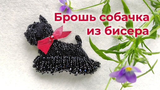 Брошь собачка, скотч-терьер в ярком ошейнике. В наличии и под заказ