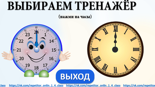 Обзор тренажёра "Который час?" Скачать и сохранить тренажёр можно по ссылке https://vk.com/repetitor_onlin_1_4_class?w=wall-185252470_265