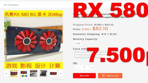 Обзор и тест на китайскую видеокарту Rx 580 8g за 7500 руб.