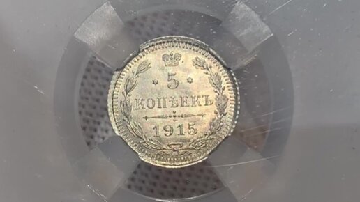 Серебряные 5 копеек 1915 года Николая II в слабе Национального Нумизматического Реестра, степень сохранности MS66.