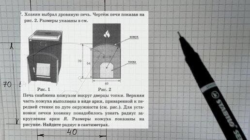 Решаем сложную задачу из 1 части ОГЭ по математике. Задача на нахождение радиуса закругления печки.