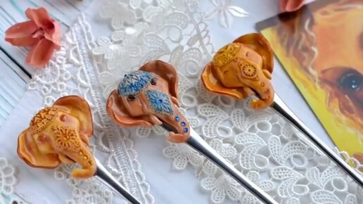 Карамельный слон • ложка с декором • полимерная глина