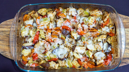 Запеченные в духовке баклажаны, кабачки и сладкий перец | Овощная запеканка