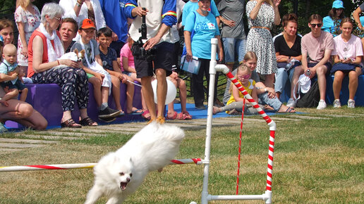 Дрессированный шпиц показывает свои возможности