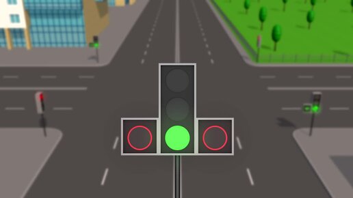 Светофор с доп. секцией без контурных стрелок на основном сигнале. Курс ПДД РФ 2022