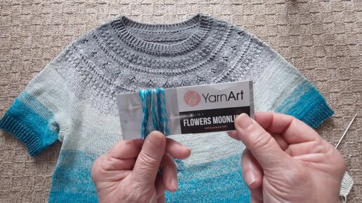 Готовая работа. Круглая кокетка сверху вниз из пряжи FLOWERS MOONLIGHT.