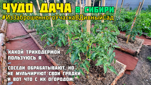 #16 Замульчировала построенные грядки. Сравнила с соседскими грядками. Моя триходерма. (Купили заброшенную дачу)