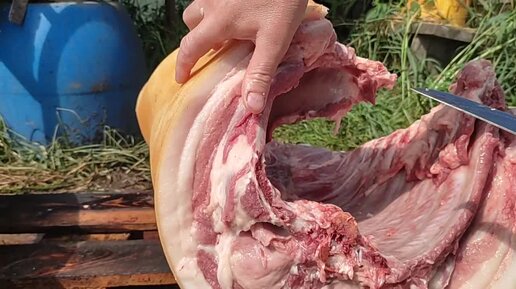 Пустил свиноматку под нож ... Порода Крупная белая возраст 2 года Забой производился электро-парализатором 65 вольт
